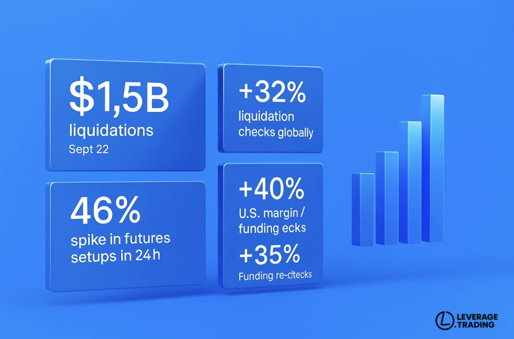 - $1.5B in leveraged longs were liquidated on Sept. 22 across major exchanges, triggering a 46% spike in futures setups within 24 hours.